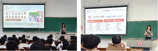 Finally, members of the graduate student union conducted an education on the school's situation and history, providing a detailed introduction to the history and development of our university since its 65th anniversary. With exciting videos and melodious school songs, they led the freshmen to deeply understand the school's philosophy and culture, showcasing the campus style of various Guangzhou University campuses.